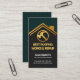 Au-dessus de la feuille, dans une couverture vert foncé, le marteau d'or est au sommet. Ceci est suivi par votre nom prestigieux, les coordonnées et une option de slogan pour faire connaître vos servicesUne grande carte pour les thèmes toitures et handyman.