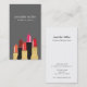 Un collage coloré de rouge à lèvres crée une intrigue visuelle sur ce modèle de carte de visite pour les maquilleurs, les cosmétiques, les entreprises cosmétiques, etc. © 1201AM CREATIVE