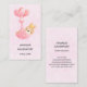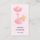 Cartes de visite avec une adorable illustration d'un petit lapin brun portant une petite couronne dorée. Porté par des ballons dans une couverture de coeur rose.