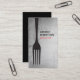 Un agencement carte de visite moderne pour toute entreprise alimentaire ou marque personnelle. Une illustration de fourche est associée à votre nom ou nom d'entreprise pour un look moderne. Placez sur un faux arrière - plan argenté pour une profondeur supplémentaire. Idéal pour les chefs, restaurants, cuisines, traiteurs, food trucks, food writer.. © 1201AM CREATIVE