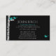 Un carte de visite au design unique, moderne et rustique, possède un arrière - plan noir peuplé de bouleaux et de feuilles en chute. De mignons petits oiseaux bleus turquoise et une paire d'oiseaux bleus aiment pop contre l'arrière - plan noir.