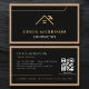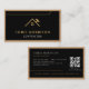 A professional black wood-grain business card designed for construction and contractor services. The built-in QR code offers quick access to your contact details, while the dark wood texture and clean modern layout create a bold, polished, and print-ready presentation.