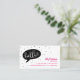 Carte de visite mignon en blanc, noir et rose chaud avec bonjour! écrit à l'intérieur d'une bulle de discours noire, entouré de petits points. Votre nom et vos coordonnées en rose chaud. Le dos est blanc rose pâle pour que vous puissiez écrire les choses à la main à vos clients si nécessaire.