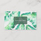 Carte De Visite Blanc de plage et feuilles tropicales vertes chic