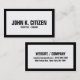 Carte de visite audacieux de frontière. Conception simple, pourtant forte et impactful. Grande frontière noire simple et grands caractères gras sur l'arrière - plan blanc contrasté.