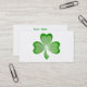 Design moderne avec un "brillant", "pétillant" vert et blanc shamrock sur un arrière - plan blanc et vert texte. Modèle de carte de visite avec un design personnalisable pour vous permettre de personnaliser avec votre propre texte, images et idées. Veuillez noter qu'il s'agit d'une image imprimée créée à l'aide de photographies originales et de techniques numériques, elle ne brille pas ou ne contient pas de vrais étincelles.