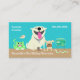 Carte de visite pour les chaises longues. Le groupe animal de compagnie sur carte comprend un grand chien, un petit chien, un chat, un oiseau, un poisson, une souris et un serpent. La carte recto verso offre beaucoup de place pour vos informations sur les soins aux animaux.