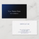 Personalize this stylish blue gradient business card template with your custom text. All the modern clear white script on the front and deep blue script on the back is editable. This minimalist professional business card template will give your clients a great impression. Share your name, profession, address, email, website and more with this calling card. The dark blue and black card would be perfect for a financial advisor, IT consultant, property manager, lawyer or doctor.