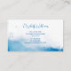 Carte de visite simple avec un nom personnalisé dans une police manuscrite élégante sur un arrière - plan bleu blanc aquarelle. Modèles pour votre nom, titre, numéro de téléphone, adresse postale et site