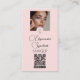 Carte De Visite Blush Pink Script Logo QR Code Photo Makeup