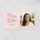 Carte De Visite Blush Pink Script Photo QR Code Brows and Lashes