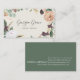 Les cartes de visite floraux chics portent votre nom ou votre nom d'entreprise dans les modèles modernes sans serif et de calligraphie en écriture flanquée d'une bordure géométrique de fleurs pastel aquarelle et de feuillage botanique dans des teintes terre inspirées du désert de pêche, vert sauge, blanc et ivoire. Ajoutez vos coordonnées complètes à l'arrière.