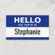 Version Bleue et Blanche Bonjour Mon nom est un design d'entreprise de base qui met en évidence votre nom d'employé. Le fameux - Bonjour, Mon nom est - look qui existe depuis des années est maintenant disponible à utiliser sur d'autres articles en plus des étiquettes et autocollants. Un look classique qui peut aussi être utilisé comme une drôle de fête.