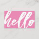 Un carte de visite rose bubblegum léger et amusant avec un script "bonjour" sur le devant. À l'envers, vous trouverez des informations commerciales uniques.