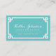 Carte De Visite Bordure clé grecque chic Turquoise et blanche