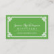 Carte De Visite Bordure clé grecque chic verte et blanche