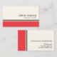 Profil ou carte de visite moderne avec une bordure en rouge et gris très foncé sur un arrière - plan légèrement blanc/crème. Nom et titre personnalisables / nom de l'entreprise sur le devant et coordonnées sur le dos. Texte gris foncé. Design élégant et classe pour hommes et femmes. Des couleurs personnalisées sont disponibles sur demande. Excellent design pour un ingénieur, un comptable, un web designer, un professionnel de l'informatique ou toute personne désirant un carte de visite contemporain et élégant.