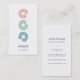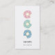 Le design de beignes mignonnes et fantaisistes pour les boulangers, les décorateurs de gâteaux ou les professionnels de la boulangerie présente un trio d'illustrations de beignets parsemés de glaces dans les tons pastel rose, aqua et bleu. Personnalisez avec deux lignes de texte personnalisé sur le devant, et ajoutez vos coordonnées complètes au verso.