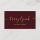 Simple Burgundy Gold Script manuscrit Calligraphie élégante carte de visite NOTE : S'il vous plaît changer le nom pour utiliser les swashes tourbillons aux deux extrémités, contactez-moi pour demande de nom personnalisé directement via zazzle ou à zazzlemg@hotmail.com avec demande de nom personnalisé gratuit