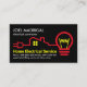 Un couvercle noir est doté d'une conception créative de câblage électrique à domicile rouge. En haut de la carte se trouve votre nom prestigieux et votre titre professionnel. Vers la base est le nom commercial "Electrical Service" en jaune à côté des coordonnées. Sur la feuille, dans une couverture blanche, un logo de bougie d'or que vous pouvez utiliser est en haut. Il est suivi de votre nom prestigieux, des coordonnées et d'une option de légende de slogan que vous pouvez changer pour répondre à vos besoins de service. C'est une carte créative faite pour les électriciens. #électricien #électricité #entrepreneur électrique #réparations électriques #électricité #ingénieur électrique #éclairage #bulbe #plug #zazzlemade