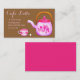 Un joli carte de visite de style rétro vintage adapté à un café - café mobile ou café ou thé. Ce design fantaisiste illustre une mignonne tasse de thé rétro avec théière contre un arrière - plan brun. La couleur arrière - plan peut être changée selon vos goûts. Ce carte de visite est entièrement personnalisable pour inclure vos propres informations personnelles.