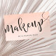 Elégant design minimaliste de carte de visite de maquillage qui comprend votre nom et le texte de maquillage dans une écriture manuscrite moderne, arrière - plan rose pâle dégradé et une information de contact sur le côté inverse.