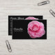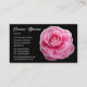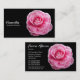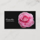 Un carte de visite avec un motif photo Camelia rose. Nom d'entreprise etc sur le devant avec d'autres détails sur le verso avec le même motif et le même style.