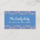 C'est un carte de visite de bonbons bleu pour un fabricant de bonbons