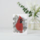 Cette carte de commerce d'artistes présente un brillant cardinal rouge. Il est vraiment le roi des oiseaux jardins ! Ici, il est perché sur un rail enneigé mangeant des graines de tournesol à l'huile noire tandis que la neige d'hiver tourbillonne autour de lui.