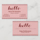 Faites une déclaration avec ce luxueux carte de visite bonjour rose pâle oeillet. Le design élégant, avec un message "bonjour" rouge audacieux, est parfait pour les professionnels qui veulent se démarquer de la foule. Que vous soyez à un événement de réseautage ou à une réunion d'affaires, cette carte vous laissera une impression durable. Customisez-le avec vos informations pour créer un carte de visite personnalisé qui reflète votre style. Améliorez votre jeu de réseautage avec ce carte de visite de message de bonjour rose et rouge profond unique. La combinaison de ces couleurs et d'éléments design élégants le distingue de la foule. Avec son look luxueux, cette carte est parfaite pour les professionnels qui veulent faire une impression durable. Customisez-le avec vos informations pour créer