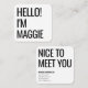 Un design mini-carte de visite minimaliste avec une citation stylisée de grande typographie "bonjour" apparié avec votre propre nom sur le devant. Back dit "agréable de vous rencontrer" avec un endroit pour ajouter vos coordonnées et informations d'affaires. Conçu dans un style mininaliste moderne dans un type noir simple propre sur arrière - plan blanc. Le carte de visite personnalisé parfait. ©Marisu Valencia