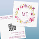 Carte De Visite Carré Aquarelle moderne Monogramme Floral QR Code