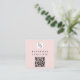 Carte De Visite Carré Blush Pink Script Logo QR Code Lashes