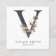 Carte De Visite Carré Boho Fleur sauvage initial V QR Code