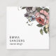 Style peint à la main fantaisie vive fleurit sur un carte de visite carré blanc unique avec votre nom et votre titre. Des teintes de pêche, rose, vert, bleu et violet pastel. Customisez au dos de la carte. Votre nom et votre titre sont en couleur, des icônes de médias sociaux à l'arrière.