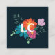 Carte De Visite Carré Bouquet floral Boho Monogramme bleu