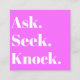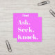 Une carte de visite carré rose et blanche unique, conçue pour créer une impression durable. Cette carte minimaliste présente une palette de couleurs chaudes rose et blanc, parfaitement complétée par une élégante police de caractères serif inspirée des affiches publicitaires européennes du XIXe siècle. L'avant de la carte affiche avec audace les mots puissants, Ask. Cherchez. Frappe. tandis que le dos encourage le destinataire à trouver la promesse de Matthieu 7:7. Avec un code QR personnalisable, vous avez la possibilité de personnaliser un appel à l'action au-dessus et au-dessous du code, ce qui le rend idéal pour une utilisation promotionnelle pour une série de sermons ou comme carte de visite personnel. Que vous soyez ministre ou membre d'une église cherchant à diffuser le message ou d'un individu ayant une inclination religieuse, cette carte est parfaite. Partagez votre foi et vos écritures de manière élégante et impactée. Apportez la puissance de ce carte de visite d'inspiration chrétienne aujourd'hui.