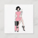 Fille de mode dans des bouteilles roses de prise de robe de laque par l'aquarelle