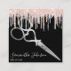 Un luxueux carte de visite de styliste de cheveux à goutte d'argent moderne avec ciseaux d'argent et typographie moderne de luxe, idéal pour coiffeur, salon de coiffure, extensions de cheveux, perruques... Les parties métallisées sont simulées par le design. Il n'y aura pas de métal sur ce produit.