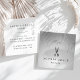 Le design élégant et simple pour coiffeurs au format carré unique présente du lettrage noir classique sur un arrière - plan gris clair et sombre, orné de fils de fils de faux fils argentés. Personnalisez l'avant avec votre nom et votre nom commercial ou votre profession sous une paire de ciseaux stylistes, et ajoutez vos coordonnées complètes, y compris les heures, le cas échéant, au verso. Un beau choix pour n'importe quelle occupation, exemple montré pour les esthéticiens.