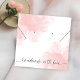 Carte d'affichage Feminine Jewelry avec police de script élégante et arrière - plan d'aquarelle rose. Cette conception de carte porte-bijoux a deux espaces réservés pour les trous d'oreille et des bouts de collier - veuillez noter que ce ne sont que des marqueurs et ne sont pas pré-poinçonnés, vous pouvez garder / retirer les marqueurs dont vous avez besoin. Cette carte de bijoux esthétique rose est l'ajout parfait à votre design d'emballage boutique de bijoux. Ajoutez votre logo et les coordonnées sur le dos et voilà, vous avez vos cartes d'affichage personnalisées.