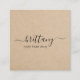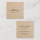 Élégant carte de visite carré avec votre signature avec des swashes dans une police manuscrite avec votre titre ou service sur un arrière - plan en papier marron rustique. L'arrière contient vos coordonnées. Ce design simple et féminin est idéal pour une entreprise artisanale artisanale.