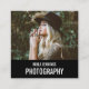 Montrez une photo préférée sur ces cartes de visite carrés modernes pour photographes ou professionnels de la photographie. Design comporte deux lignes de texte personnalisé sous votre photo en blanc sur un arrière - plan noir. Ajoutez vos coordonnées complètes à l'envers en lettres noires nettes et modernes.