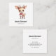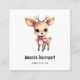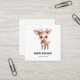 Cartes de visite avec l'illustration d'un adorable cerf de bébé. Grands yeux grands oreilles avec une grande tête et des petits bois bruns. Portant un gros arc rouge.