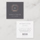 Faites la promotion de votre entreprise de design de bijoux avec ces élégants cartes de visite carrés dans gris moyen raffiné avec accents or rose. Design présente une illustration de pierre à gemme de style art déco en feuille d'or rose, avec un monogramme initial unique à l'intérieur et deux lignes de texte personnalisé en dessous. Ajoutez les coordonnées de votre joaillier à l'envers, ainsi que votre nom d'utilisateur des médias sociaux. Pour afficher d'autres options d'icônes de médias sociaux, ouvrez l'outil de conception.