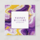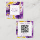 Carte De Visite Carré Marbre violet jaune Agate QR Code Carré liquide