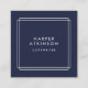 Des cartes de visite simples et saisissants, en forme de carré unique, donnent une impression moderne et professionnelle. Le design classique bleu marine et blanc présente une bordure géométrique blanche avec votre nom et titre ou nom d'entreprise au centre. Personnalisez l'envers avec vos coordonnées complètes.