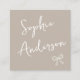 Carte De Visite Carré Minimalist Beige with Elegant Script & Bow