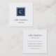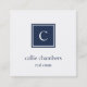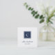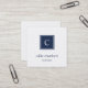Le design chic et professionnel marine bleu et blanc carré carte de visite est doté d'un élément carré moderne tenant votre monogramme initial unique, avec votre nom et titre ou nom d'entreprise sous en lettres minuscules contemporaines. Personnalisez l'envers avec vos coordonnées dans marine correspondante. Un choix moderne pour n'importe quelle occupation; échantillon montré pour les agents immobiliers ou immobiliers.