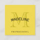Carte De Visite Carré Monogramme classique jaune avec texte arc